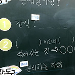 수업준비 [교사 준비물] 1. 2. [학생 준비물]1.2. 수업목표 "무게재기 단원 실험 후 학생들 스스로 공책정리 하기" 1. 4학년 무게재기 단원, 3시간 정도에 걸쳐 모든 실험을 경험하게 하였다. (1) 실험 중간 중간 무게와 질량의 개념도 설명해주었다. 2. 따로 1시간을 할애하여 그동안 배운 실험 내용을 공책에 정리해 보기로 하였다. (1) 총 4차시 분량의 내용을 정리한다. 그래서 모둠별로 판서를 채울 수 있는 기회를 준다. 기본적으로 꼭 배워야 할 내용에 대한 틀은 교사가 잡아준다. 빈칸을 곳곳에 뚫어 놓기도 하고,길게 쓰는 곳은 아예 괄호를 길게 넣어두기도 한다. 학생들은 배운 내용과 교과서를 참고하여 판서를 완성한다. 더 중요한 내용을 발견했다면 추가할 수도 있다. 해당 차시의 중요내용의..