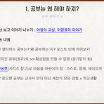공부는 부정적인 이미지를 가지고 있지만 왜 해야하는지에 대해서는 긍정적인 이미지를 가지고 있다. 그러나 부정적인 공부로 이룰 꿈이 긍정적이라는 것은 모순이다. 공부에 관한 이야기는 매우 중요하다. 앞으로 교과학습을 위한 동기부여가 되기 때문이다. 앞으로 아래의 내용으로 학생들과 다시 공부와의 전쟁을 시작하려 한다. http://educolla.sharedu.kr/?r=educolla&c=%E2%80%8Bmonday%2F01&m=bbs&bid=2015-renewal-01&cat=&sort=gid&orderby=asc&recnum=20&type=&iframe=&skin=&where=subject%7Ctag&keyword=%EA%B3%B5%EB%B6%80%EB%A5%BC+%EC%99%9C+
